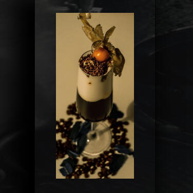 This elaborate flute actually makes for an easy sipping spirit that will help replenish your energy ; black blood steeped, espresso, bourbon, crème de la menthe, crème de cocoa, spiced rum topped with vodka infused whipped cream, and a golden chocolate truffle.