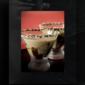 Like a Femme who can't get enough sweetness in between: An enticing blend of drizzled caramel, specialty Sirop de chocolat, infused with nymph's blood. Made with Crème de cocoa, kahlua, heavy cream, and caramel flavoured vodka. Rimmed with crushed toffee.